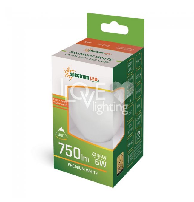 Żarówka LED Kulka 6W E14 COG WW WOJ+14394 Spectrum