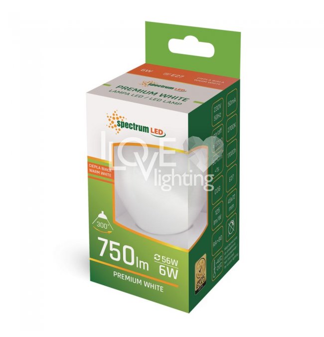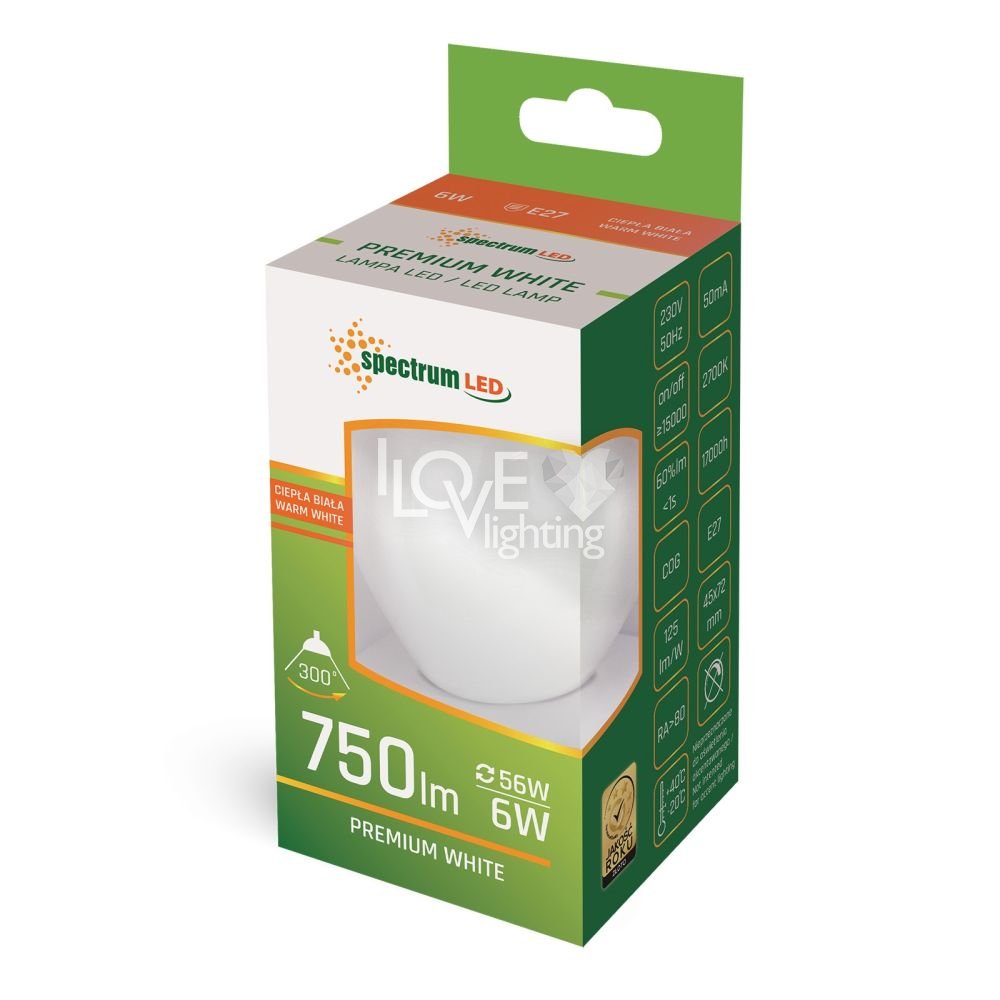 Żarówka LED Kulka 6W E27 COG WW WOJ+14398 Spectrum