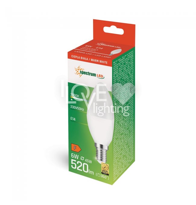 Żarówka LED Świecowa 6W E14 WW WOJ+13026 Spectrum