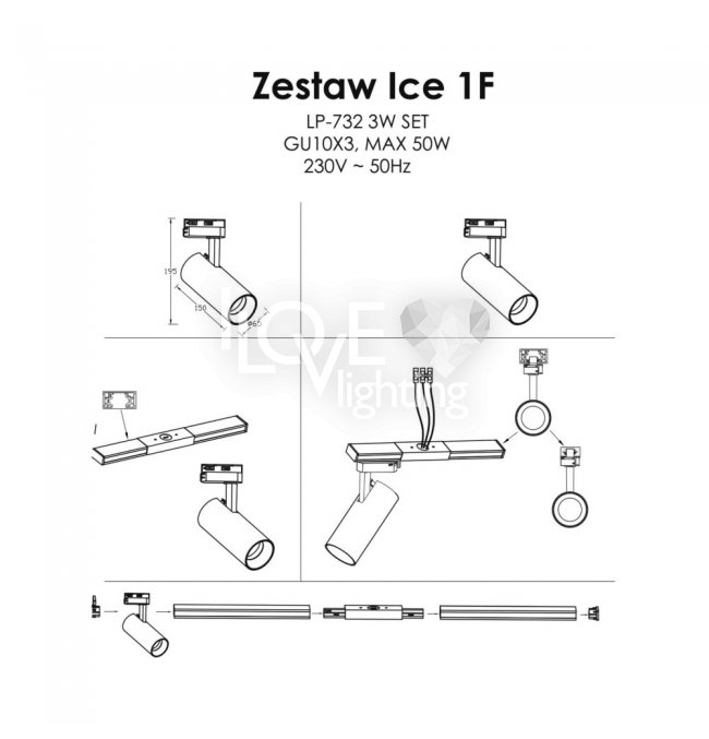 Zestaw x3szt. reflektorów szynowych 1F ICE LP-732 3W BK SET Light Prestige