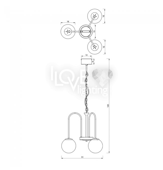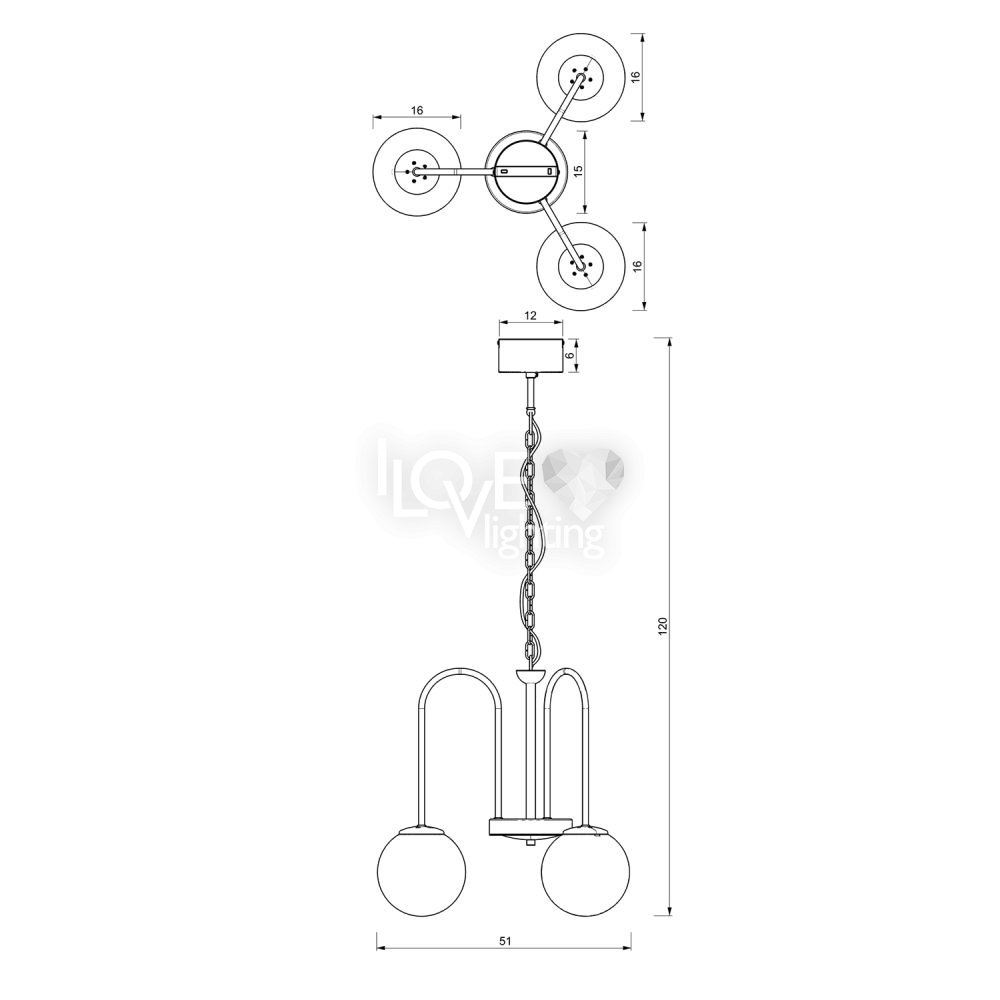 Żyrandol trójramienny kule CAMBRIDGE 3194 Luminex